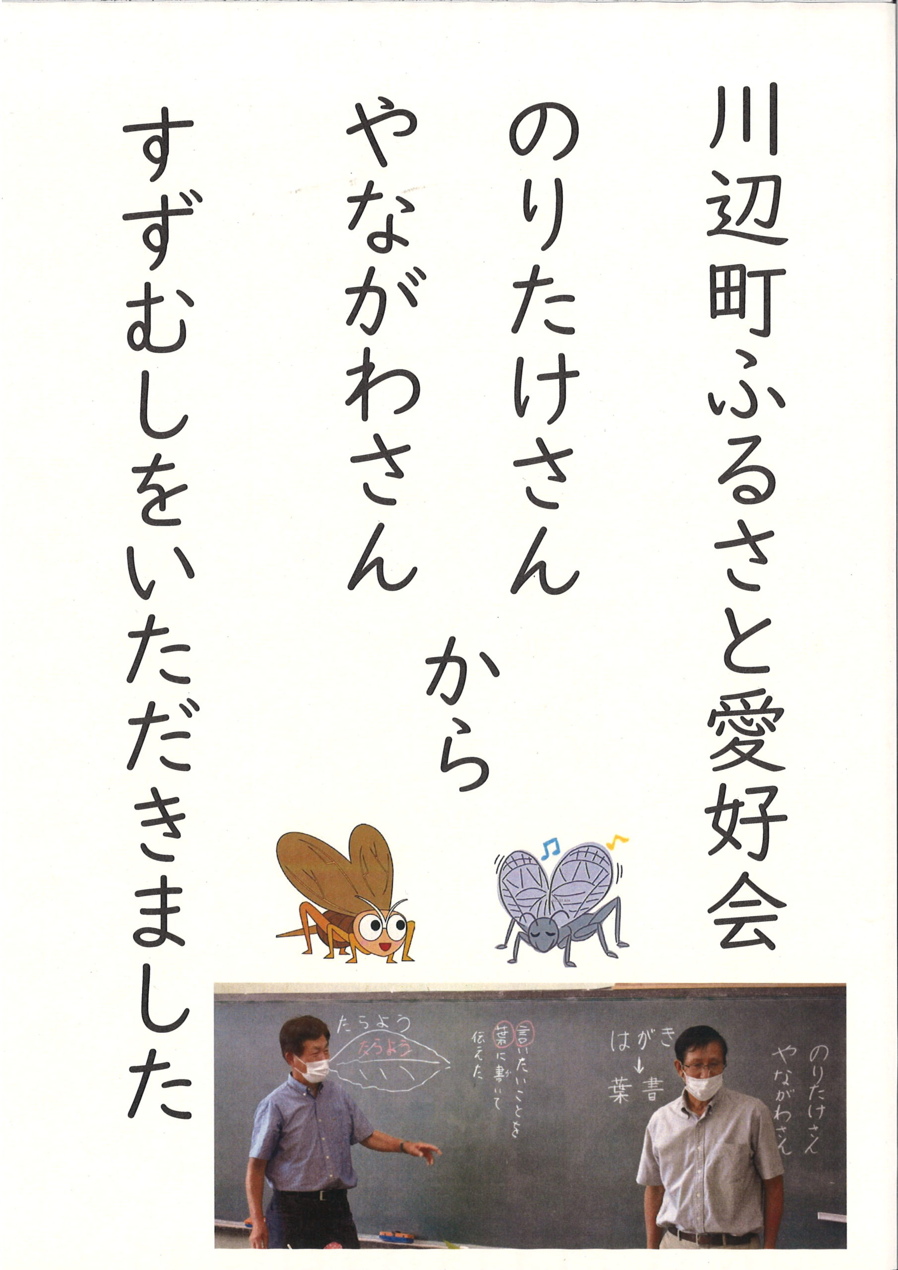いつも大変お世話になっている「川辺町ふるさと愛好会」の則武様、柳川様からすずむしをいただきました。