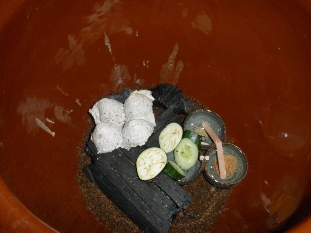 すずむしは茶色い瓶の中にいます。