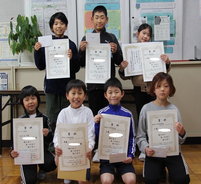 11月26日(日) 「まなびピア川辺」で行われた「ぬくもり賞」と「家庭の日啓発図画ポスターコンクール」で表彰を受けた西小の14名の児童を紹介します。