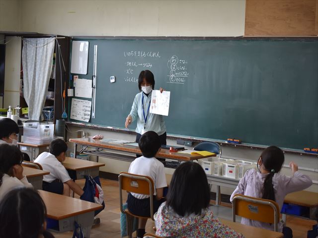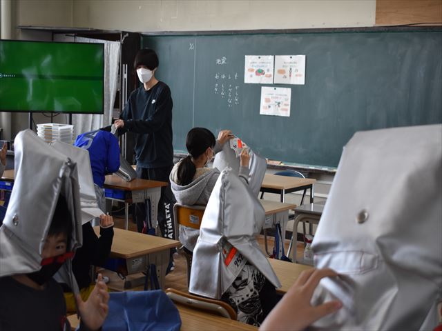 まず、教室で自分の命を守る行動について、担任の先生と一緒に確認しました。