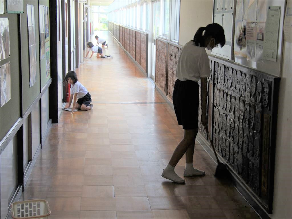 1学期間お世話になった教室や校舎をいつも以上に丁寧に掃除しています。