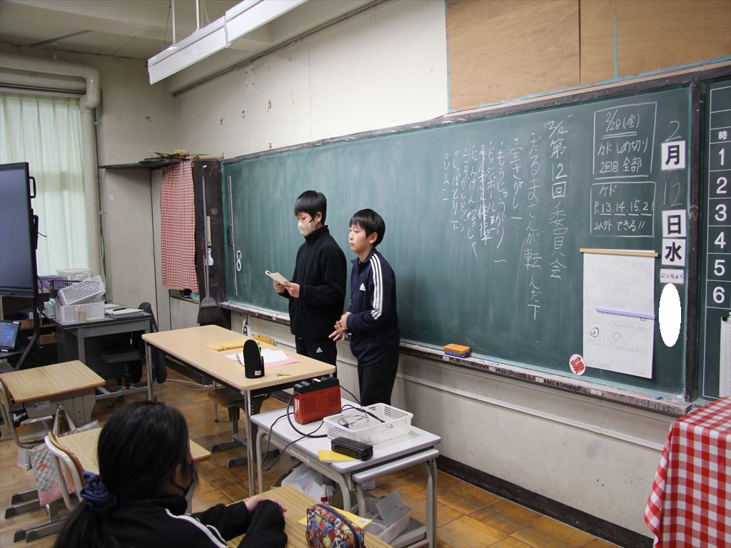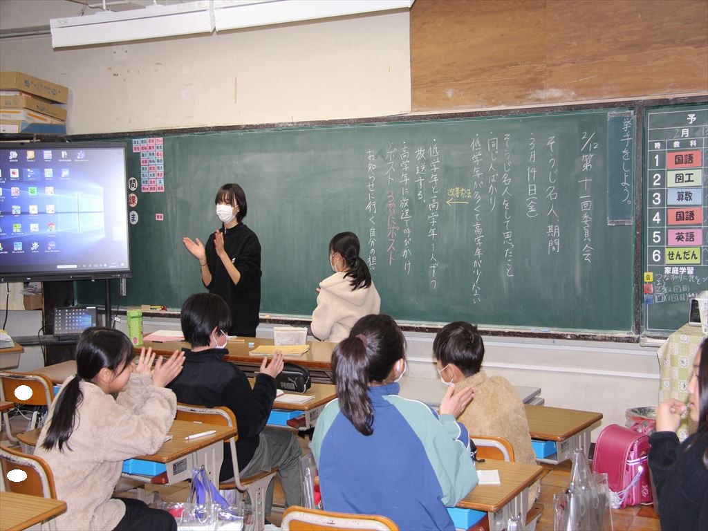 体育委員会が全校あそびの計画を立てている様子を見学しました。