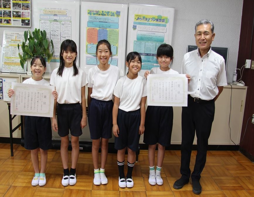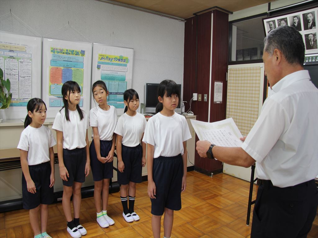 校長室に報告に来てくれた川辺ジュニアバレーのみなさんは、「これからも練習をがんばります。」と笑顔で話してくれました。