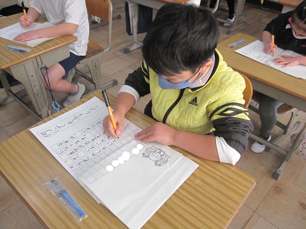 1,2年生はフェルトペンを使い丁寧に書きました。