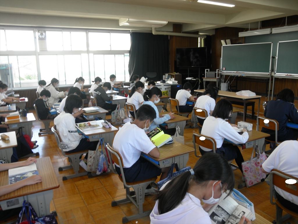 この日、1年生以外の学年は、全校読書に取り組みました。6年生の教室では、開始時間前から全員が集中して読書に取り組む姿があり、とっても落ち着いた朝のスタートでした。