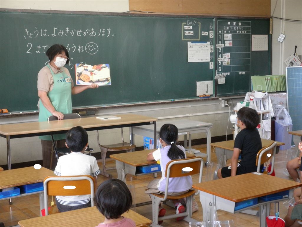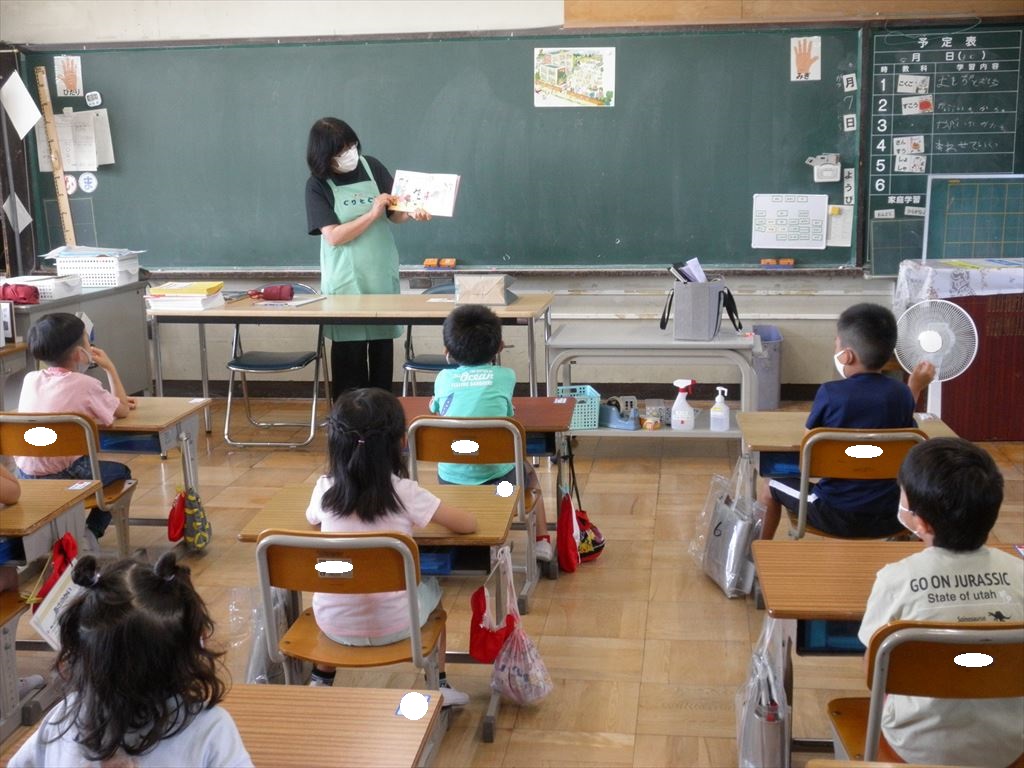 6月7日(火)の朝の活動の時間に、1年生の各学級で、読み聞かせサークル「ぐりとぐら」さんにお越しいただき、読み聞かせを行いました。