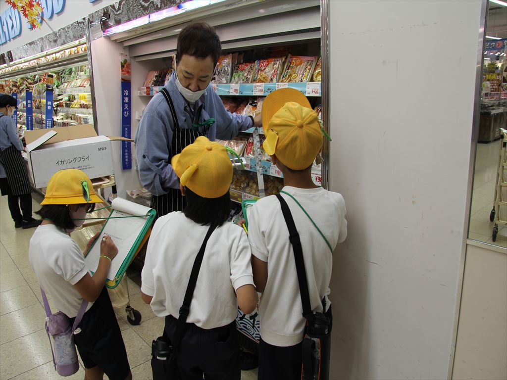 また、班ごとに店内を見学し、それぞれの売り場で働いている店員さんにインタビューもしました。陳列の仕方の工夫なども教えていただきました。