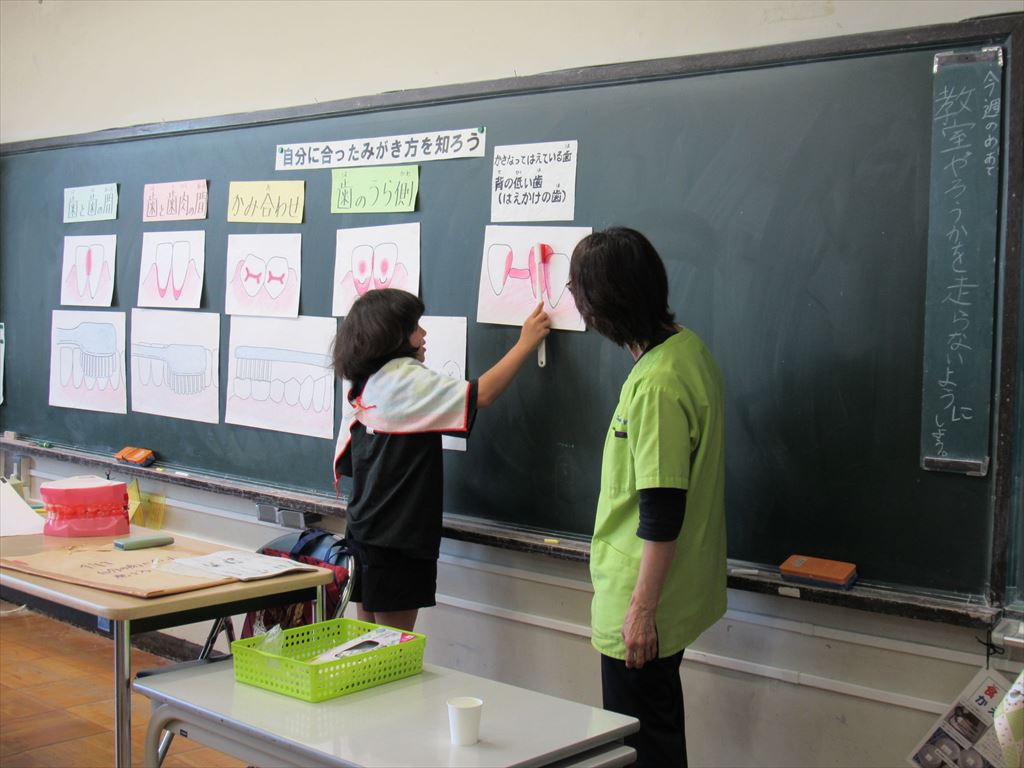 歯と歯の間の磨き方は?歯の裏の磨き方は?かみ合わせの磨き方は?など、歯の模型を使いながら具体的に磨き方を考えました。