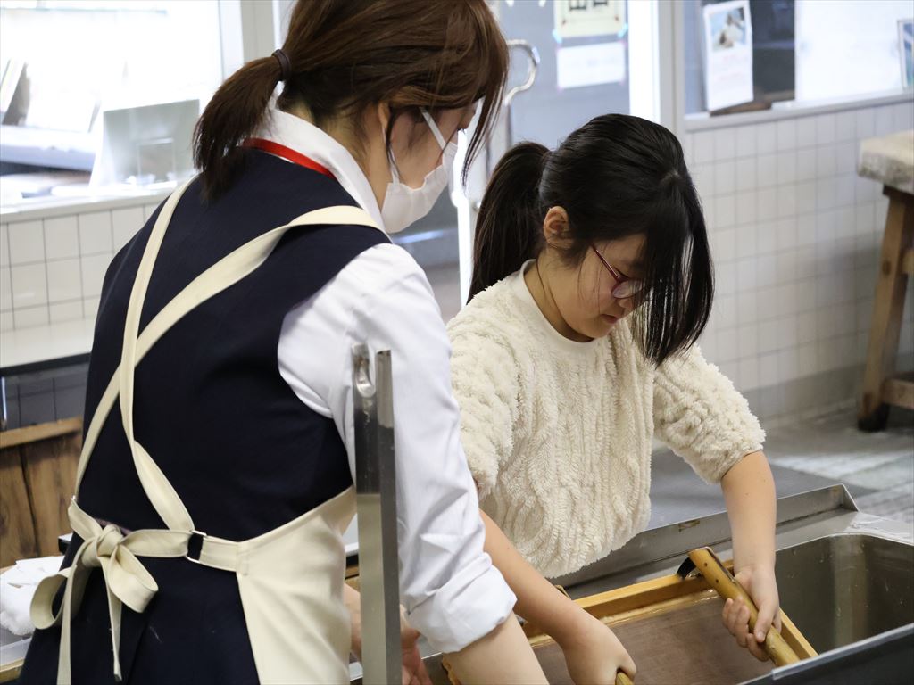 その後は、紙すきの体験をしました。職員の方々に教えていただきながら、無事に全員が紙すきを終えることができました。