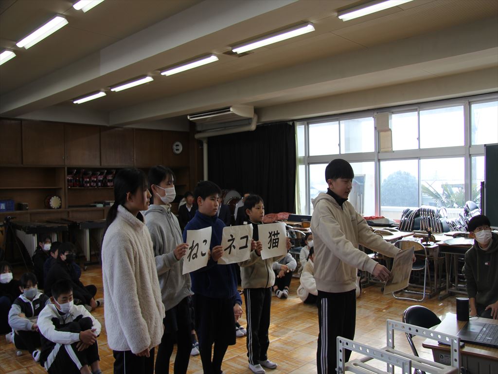 はじめに、川辺西小学校で行っている教科の授業の説明や学校生活の様子を紹介しました。