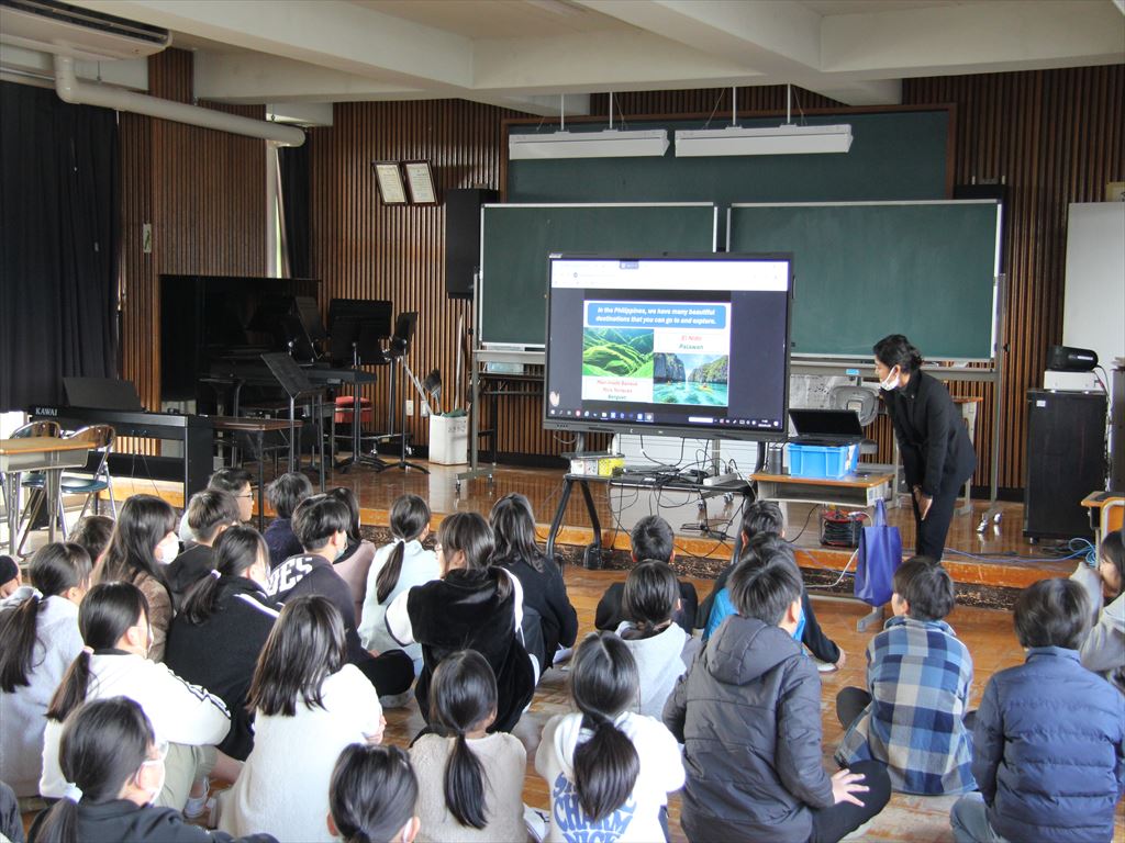 後半には質問の時間もありました。質問の中で、フィリピンの小学生は朝6時に登校していると聞き、みんなで驚きました。