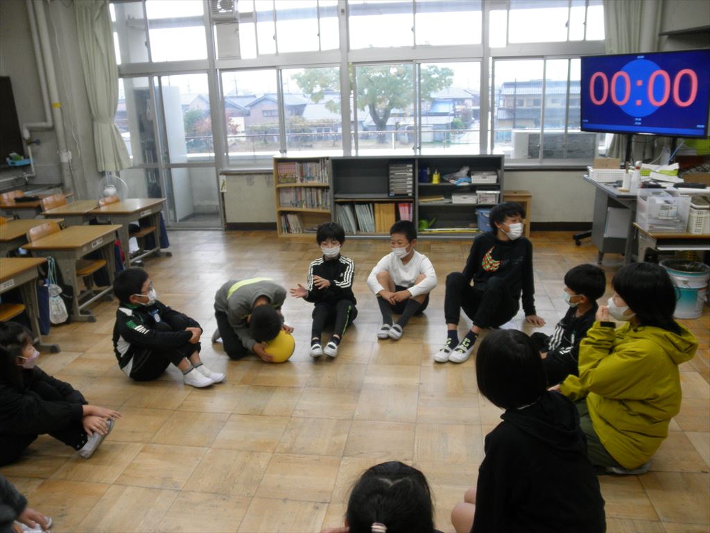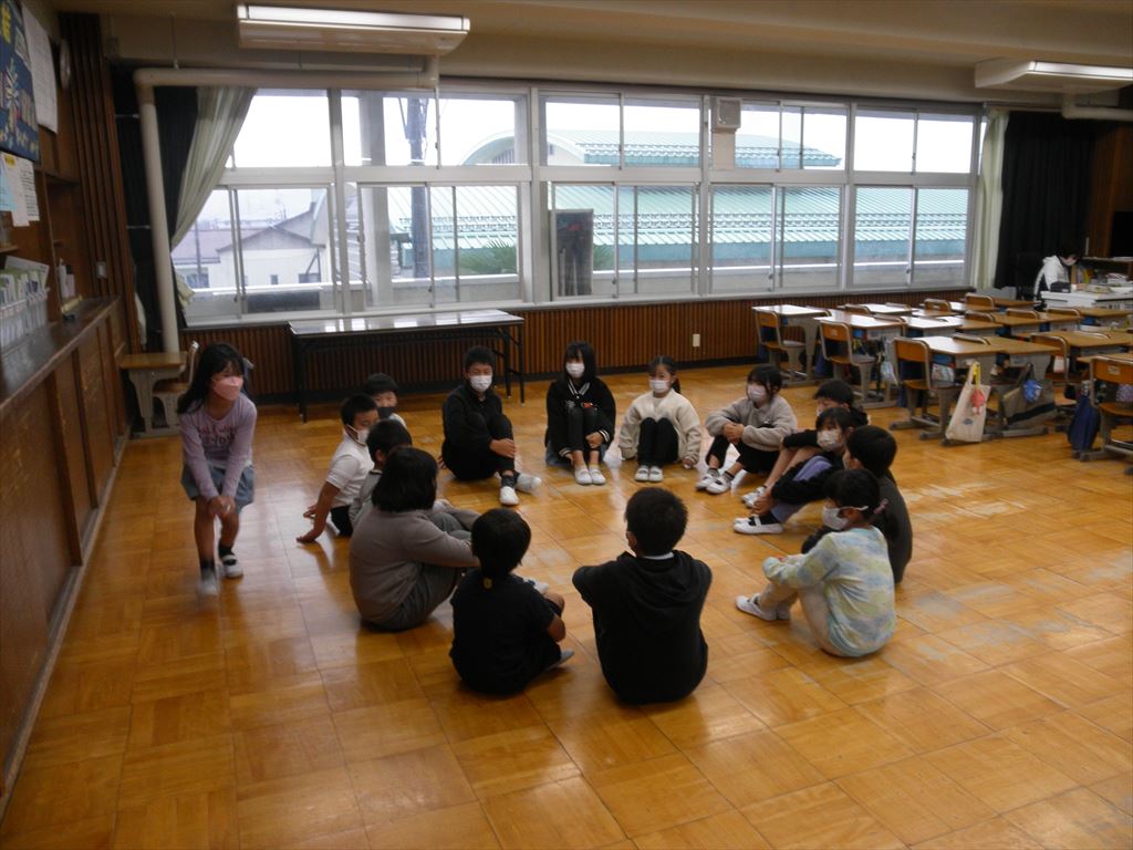 「ハンカチ落とし」「じゃんけん列車」など、各班のリーダーとなる高学年の児童が、どんな遊びをするのか考え、みんなで楽しみました。