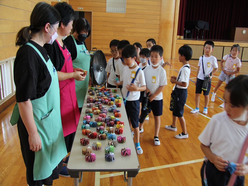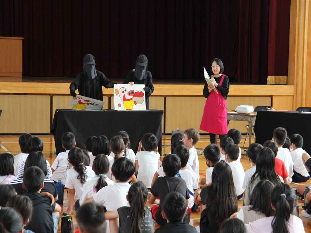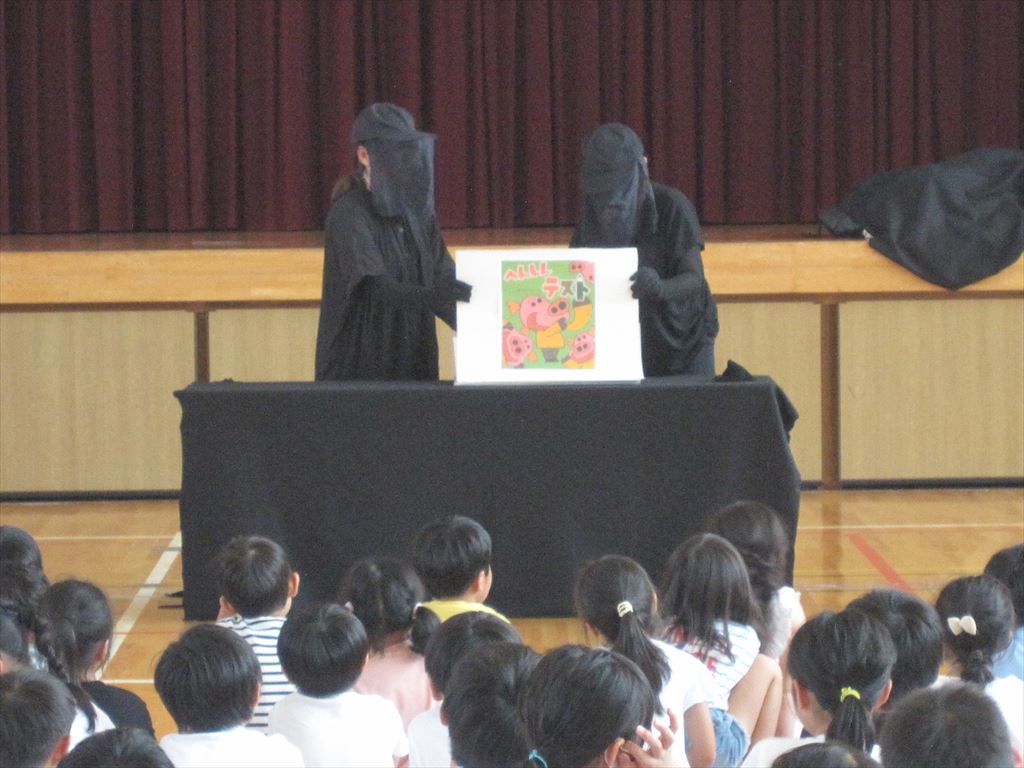 7月5日(水)1・3・5年生、 7月18日(火)2・4・6年生に、「ぐりとぐら」さんが七夕会を開いてくださいました。