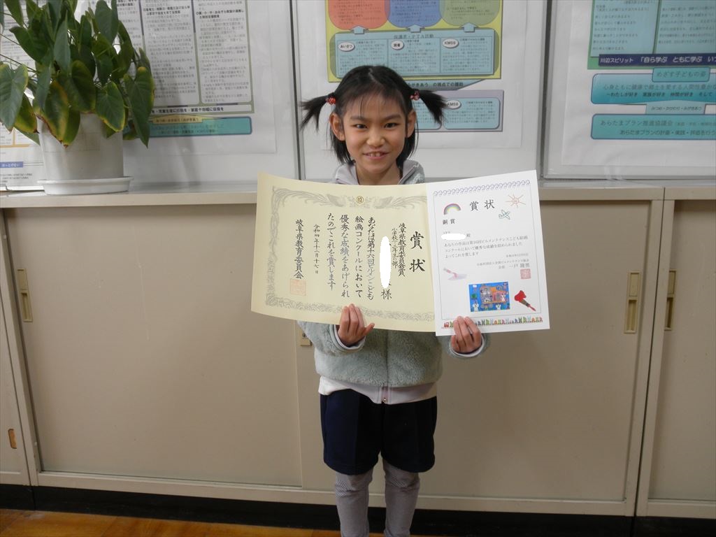 「第16回ビルメンテナンスこども絵画コンクール」で本校児童が岐阜県教育委員会賞を受賞しました。この児童はOKBふれあい会館で行われた表彰式で表彰されました。おめでとうございます。