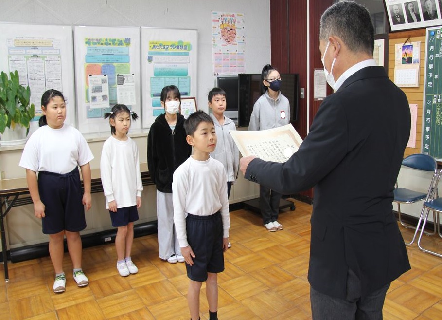 「令和5年度加茂郡小中学校 読書感想文コンクール」で力を発揮した6名の児童を紹介します。6名は、夏休みに読んだ本について自分の思いをまとめ感想文として提出し、見事に入選を果たしました。おめでとうございます。