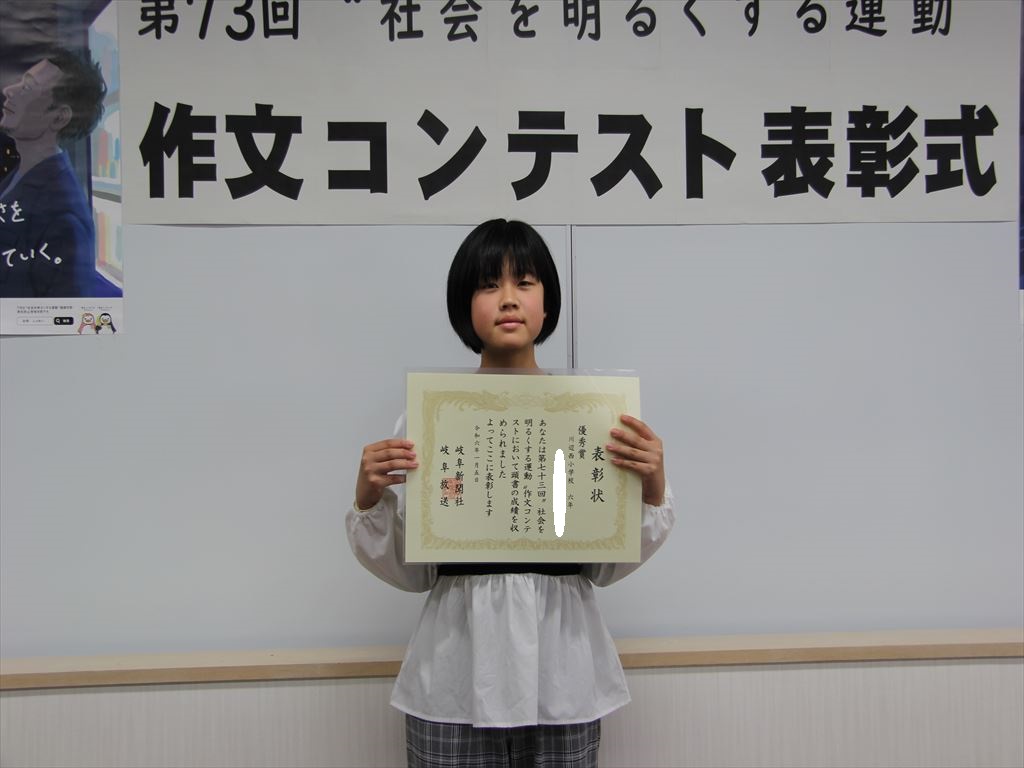 第73回「社会を明るくする運動」作文コンテストで、本校の6年生児童が「岐阜新聞社賞」を受賞しました。