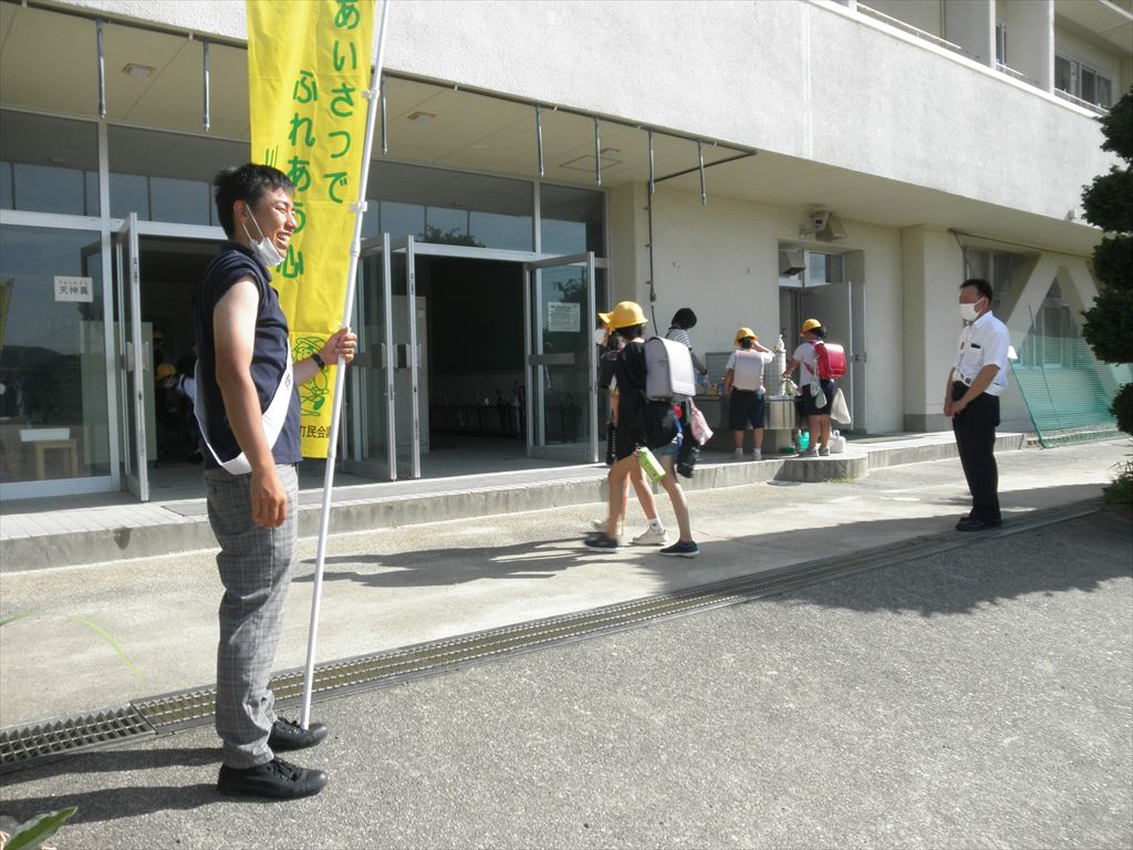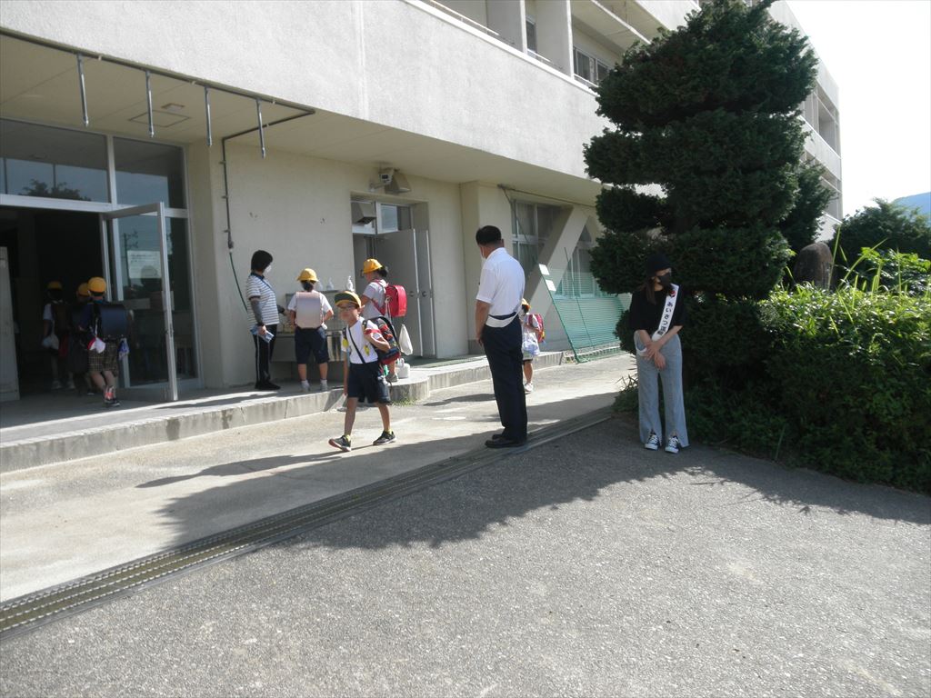 登校してくる子どもたちは、暑い中でしたが、みんな元気に朝のあいさつをすることができました。