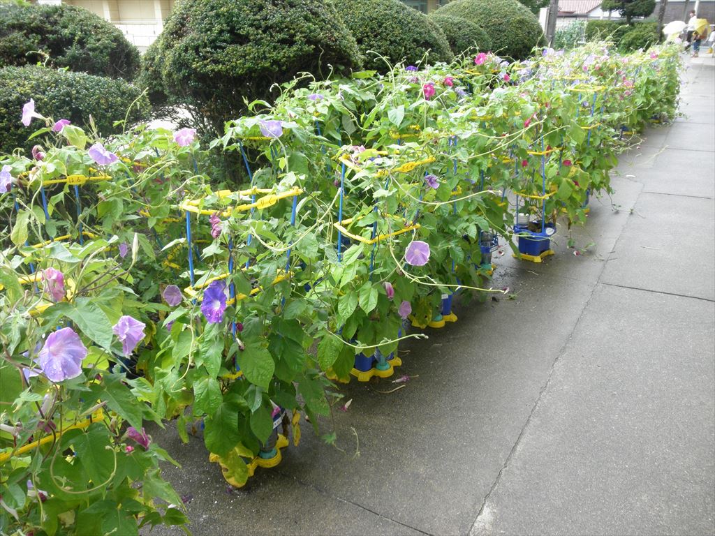 7月4日(月)1年生が大切に育てたあさがおが、たくさん咲きました。