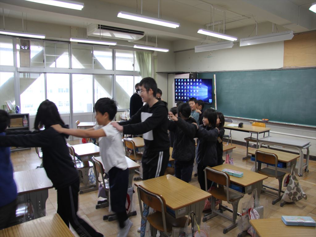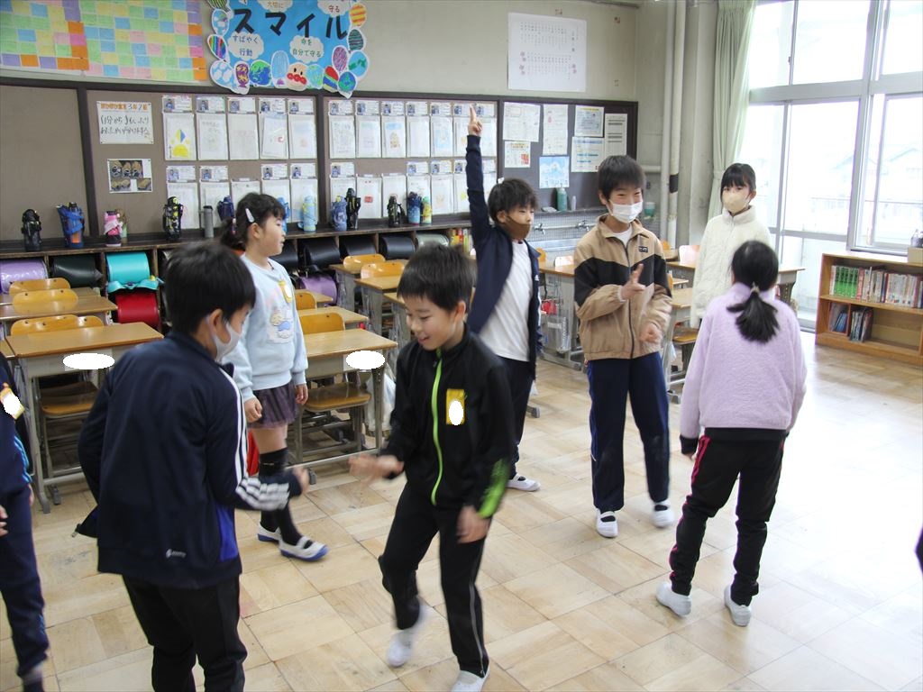 1年生から6年生まで、全員が一列になってじゃんけん列車を楽しんでいる班もありました。