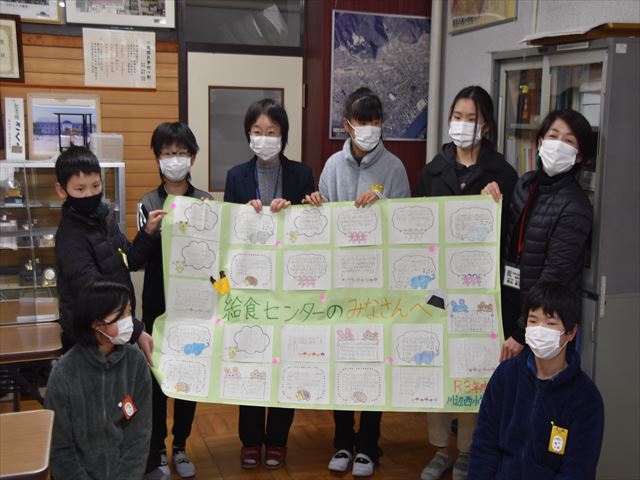 「毎日、美味しい給食を準備してくださりありがとうございます」といって、6年生の代表が給食センターの方へ感謝の手紙を渡しました。感謝の気持ちをちょっとした形で表すことができました。給食センターの皆さん、毎日毎日ありがとうございます。