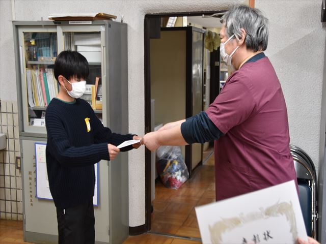 2月16日の昼休みの時間帯に歯の優良児審査で選ばれた2名の児童の表彰がありました。虫歯予防は健康を維持するための基本です。これまで綺麗な歯を保つことができた理由は、お家の方々の努力あってのものです。お家の方に感謝しましょう。そして、両親から授かった大切な歯をこのまま綺麗に保ちたいものですね。