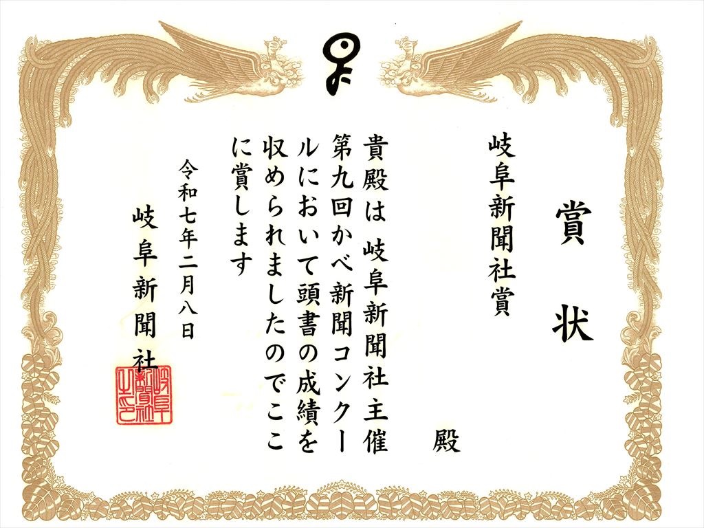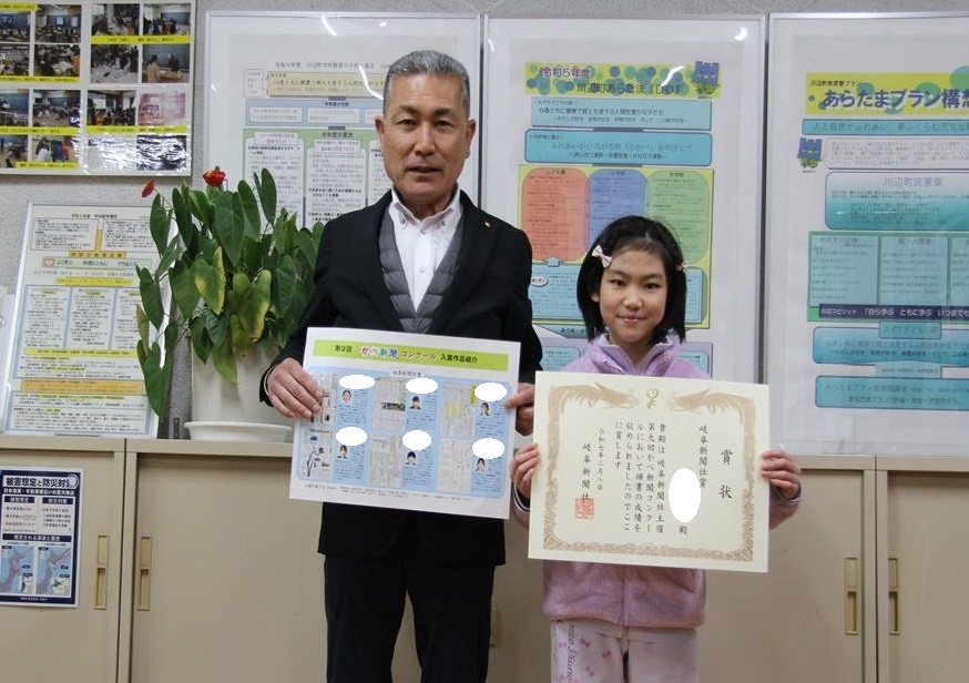 本校の児童が、「第9回かべ新聞コンクール」で岐阜新聞社賞を受賞し、岐阜新聞本社での表彰式に参加しました。おめでとうございます。