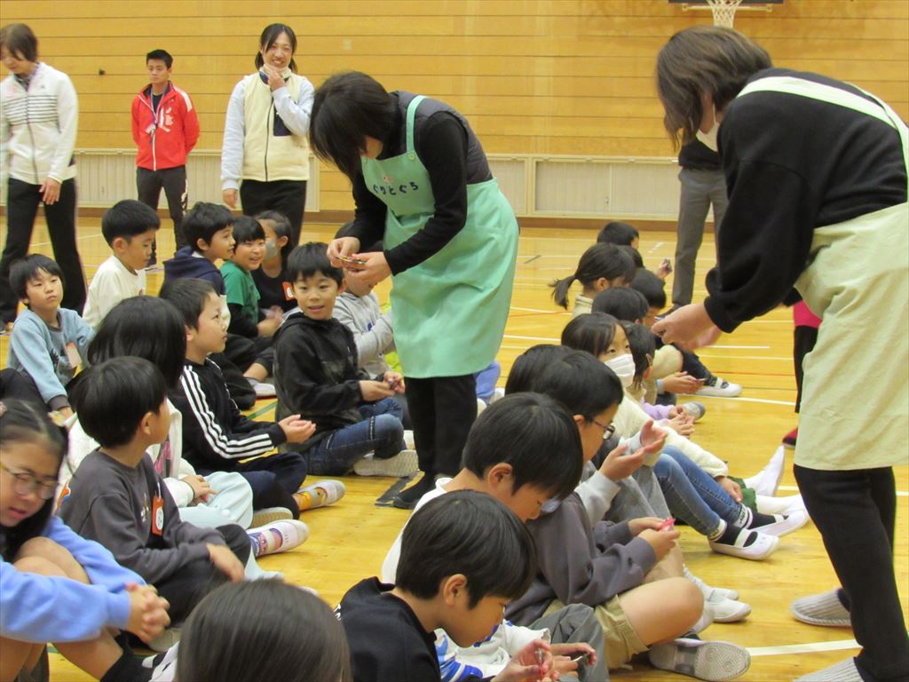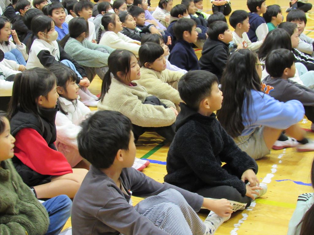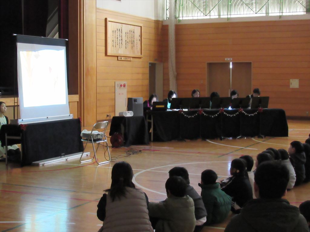 12月3日(2・4・6年)、10日(1・3・5年)の2日間、ぐりとぐらさんがクリスマス会を行ってくださいました。
