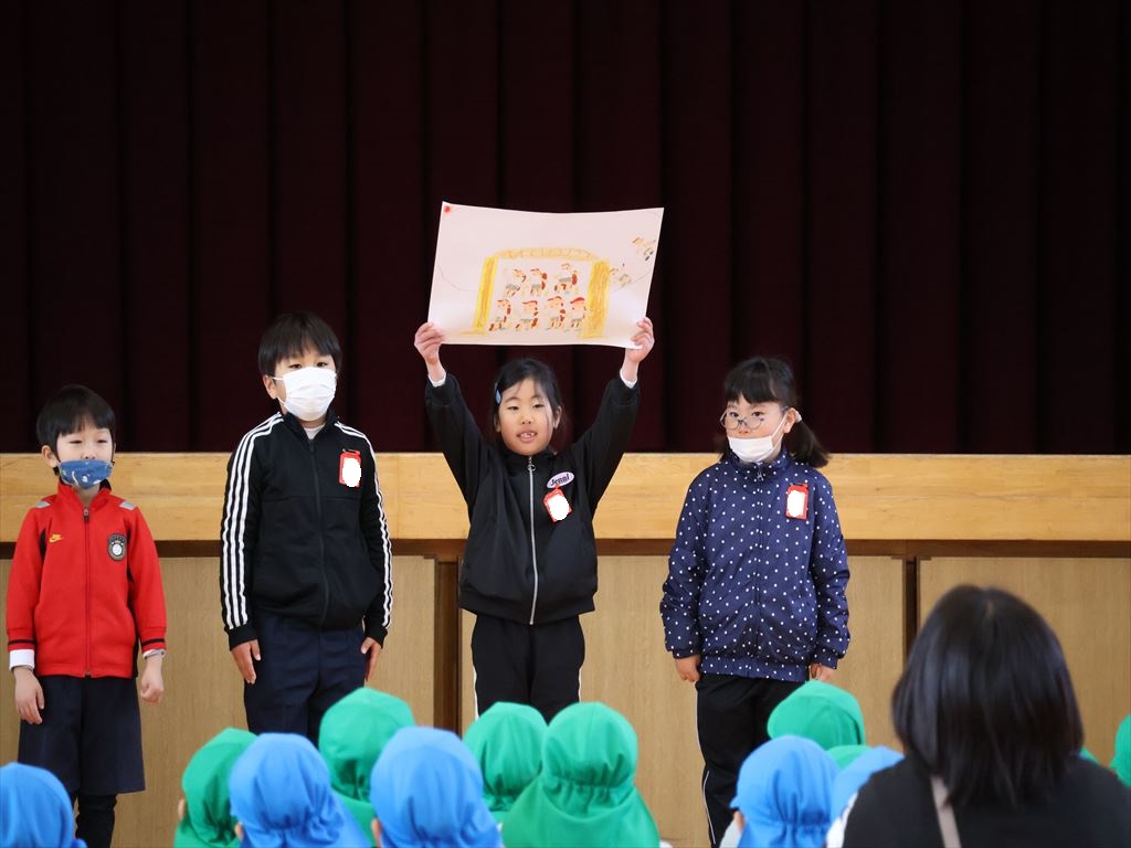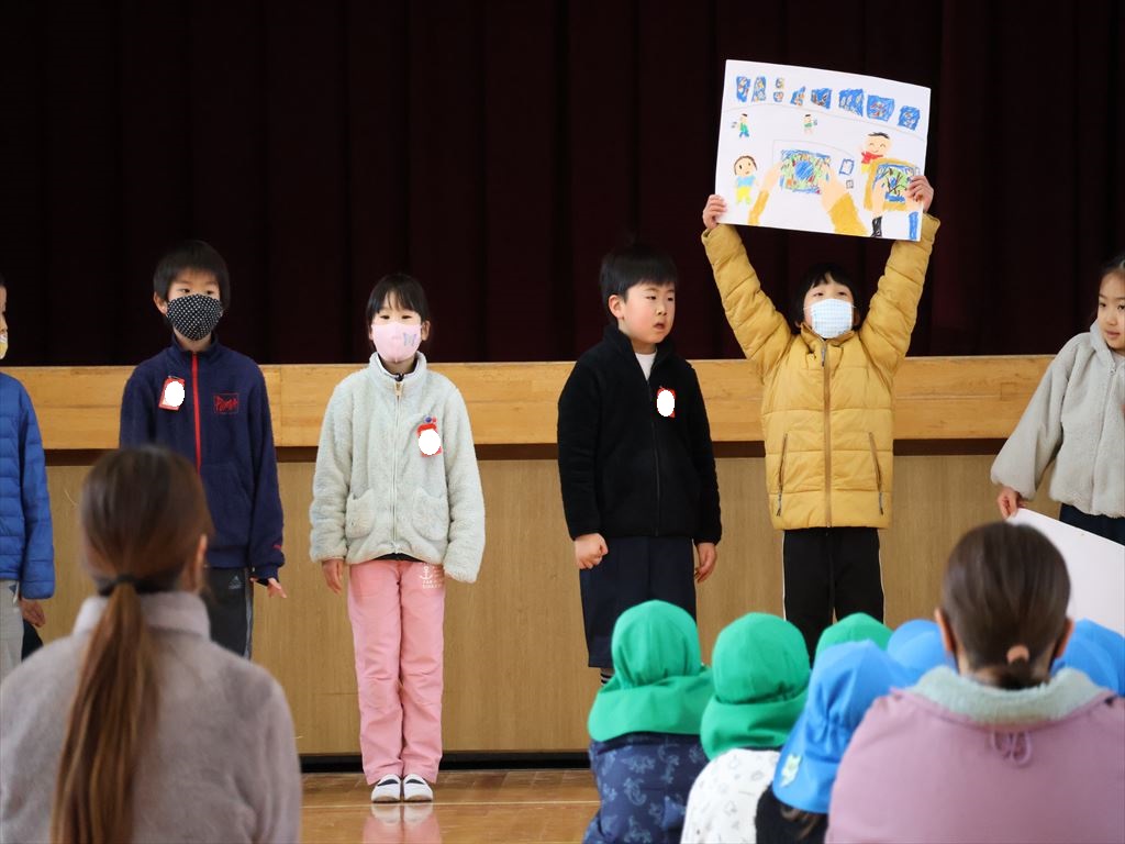 1年生が、4月に入学するこども園の年長さんを招いて、交流会を行いました。