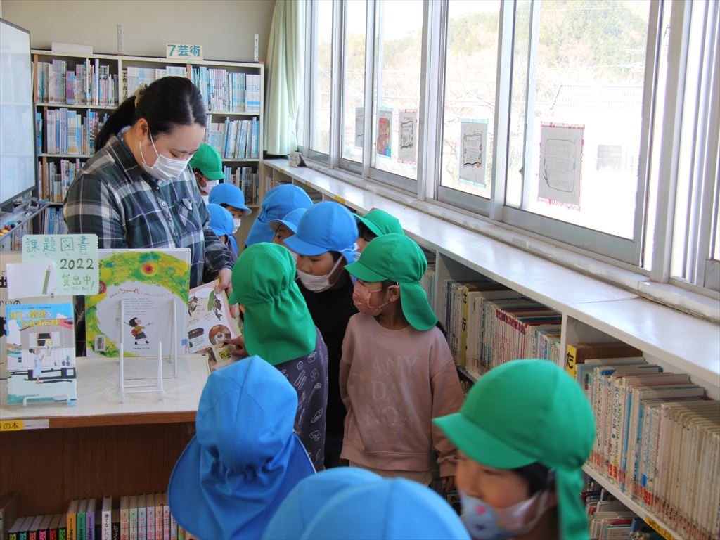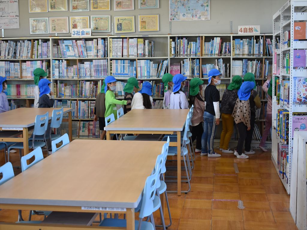 次に、年長さんたちは西小の校舎内を探検しました。図書室や理科室など、いろいろな教室を見てもらいました。