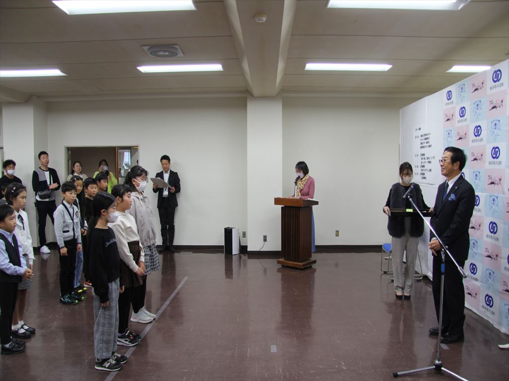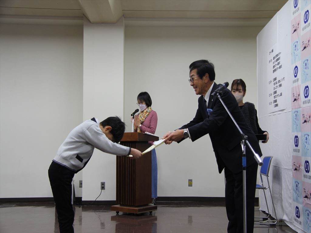当日参加できた児童は、川辺町長様から直接賞状をいただきました。