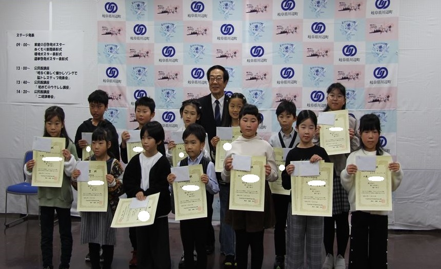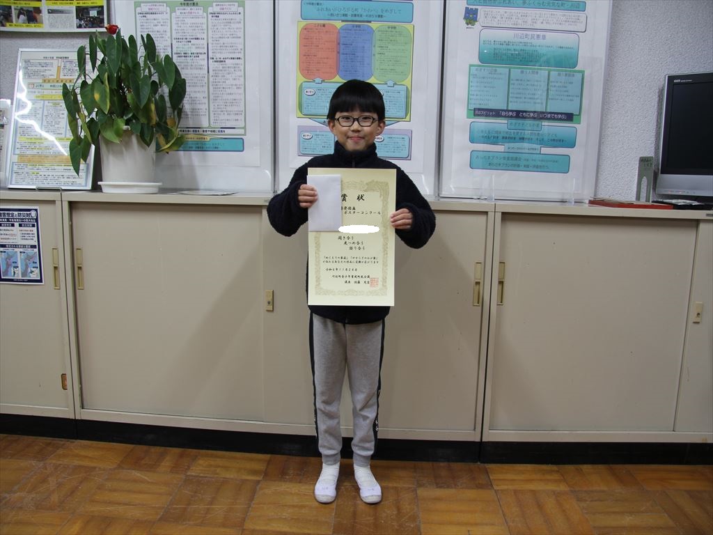 11月24日(日) 「まなびピア川辺」で行われた「ぬくもり賞」と「家庭の日啓発図画ポスターコンクール」で表彰を受けた西小の14名の児童を紹介します。