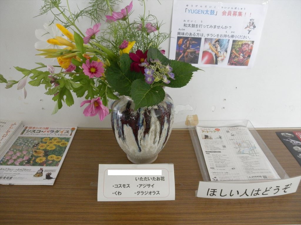 また、この地域の方から、コスモスやあじさいなどのお花もいただきました。ありがとうございました。