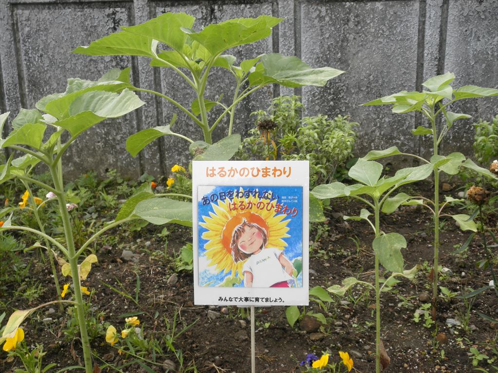 この「はるかのひまわり」は、職員玄関前の花壇に植えてあります。夏に向けて大きく成長してきれいな花を咲かせてくれると思います。その日を楽しみに、みんなで水やりなどをして大切に育てていきたいと思います。