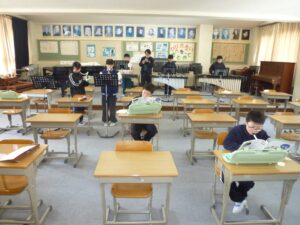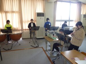 そんなひな人形を見ていた昼休み、音楽室から楽器の音色が聞こえてきました。のぞいてみると、次期北小リーダーの5年生が「6年生ありがとうの会」に向けて合奏練習をしていました。仲間と教え合いながら練習する姿は、あったかい雰囲気でとっても素敵でした。本番は2月26日。感謝の心がこもった素敵な合奏を期待しています。