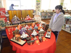 川辺北小学校では、学校運営協議会の皆さんが「子ども達に少しでも季節を感じてほしい」という願いで、鯉のぼり、七夕飾り、ハロウィン、クリスマス、正月飾り・・・など、その季節にあったものを学校に飾ってくださっています。今回は3月3日のひな祭りに向けて、素敵なひな人形を図書館に飾ってくださいました。運営協議会の皆様、いつもありがとうございます。