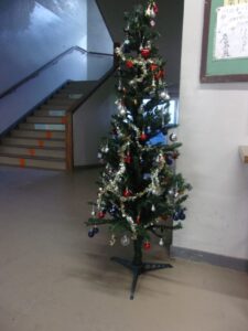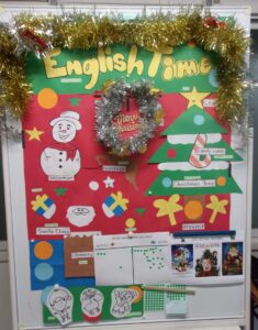 ALTのラム先生が、2階の廊下にクリスマスボードを掲示してくれました。児童の有志の皆さんが、児童玄関にクリスマスツリーを飾ってくれました。もうすぐ、クリスマスですね🎅