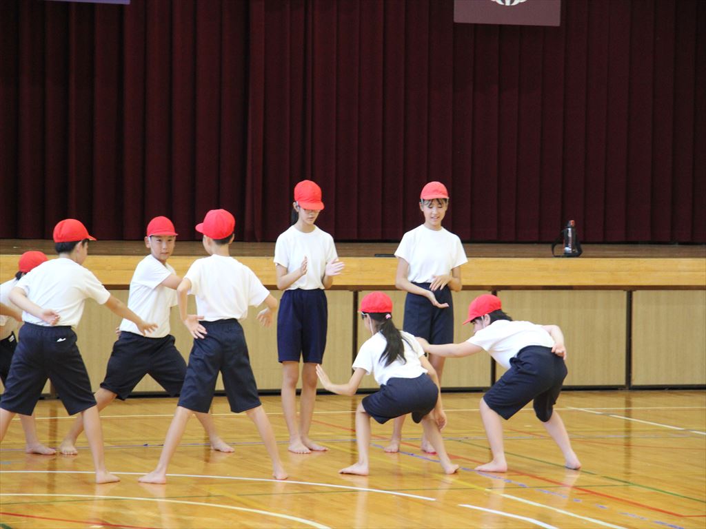 はじめに昨年度ソーランを経験している6年生が5年生にお手本を見せました。