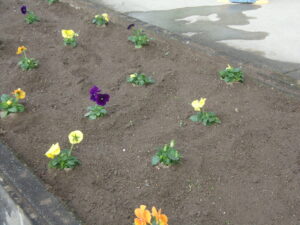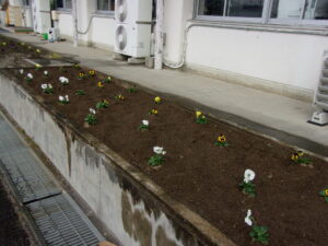 職員室前の花壇に、パンジーの苗を植えました。学校にお越しの際は、ぜひ、ご覧ください。