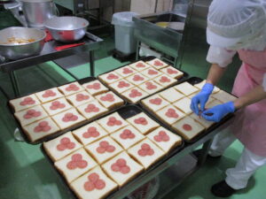 ピザトーストは、中学校のみの日にしか作ることができないため、中学1年生の生徒からは、「ずっと食べたかったので、食べることができてうれしかった。とってもおいしかった。」などの感想を聞くことができました。