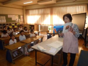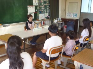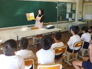 今日の朝活動の時間は、子どもたちが毎回、楽しみにしているブレーメンさんによる読み聞かせでした。まず、読んでいただいたのは、「馬串の孫太郎と尾崎の尾白」という川辺の昔話でした。その後、ブレーメンさんが選んだ各学年にあった本を、それぞれ読んでいただきました。ありがとうございました。