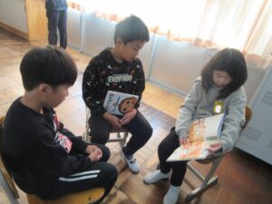 今朝の朝活動では、なかよし月間の取組の一環として「ペア読書」が行われました。これは、4~6年生がペアとなった1~3年生の子たちに読み聞かせをするものです。図書委員会が主催してくれましたが、読み聞かせだけでなく、ペアで話をする時間を設けたり、最後にハイタッチをしたりして、少しでも温かな雰囲気をつくろうとひと工夫したところもとっても素敵でした。
