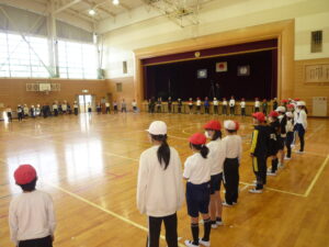 午後は、川辺町にある3つの小学校の4年生が川辺西小に集まって、交流会が行われました。今日、初めて顔を合わせた子がほとんどでしたが、講師の方をお招きして行った「アクティブ チャイルド プログラム」で、心も体もぽかぽか。みんなで仲良くなりました。最後にみんなで歌った「いつだって」の合唱も、心が一つになった素敵な合唱でした。中学校で一緒に生活できるのが楽しみですね。