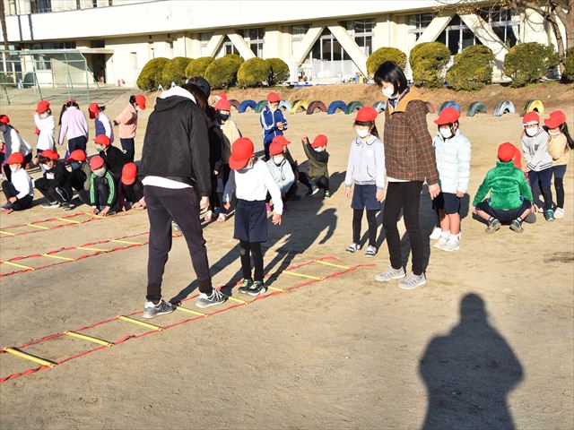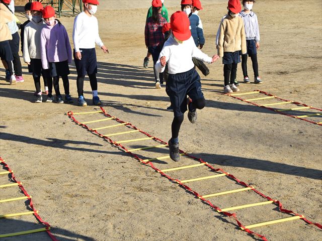 水曜日はからだを鍛える活動の日。朝の会後、グラウンドを見てみると1年生、2年生、4年生がスキップ、ラダートレーニング等に取り組んでいました。リズムよくからだを動かすために、がんばる子どもたちでした。