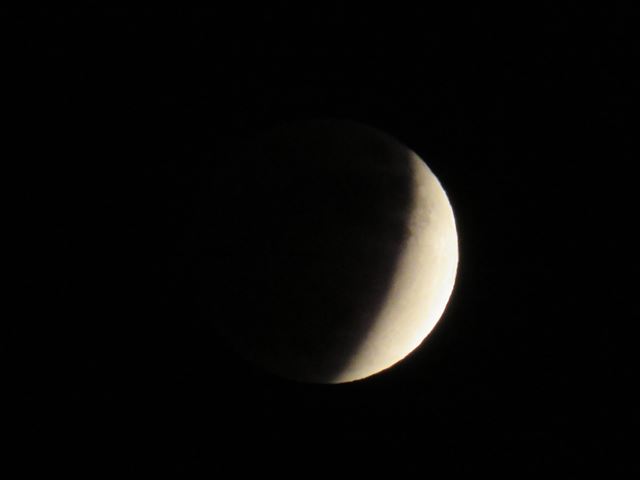 今日は140年ぶりの部分月食でした。西小学校では、17時20分くらいから先生方が屋上で観察をしました。その時の写真です。