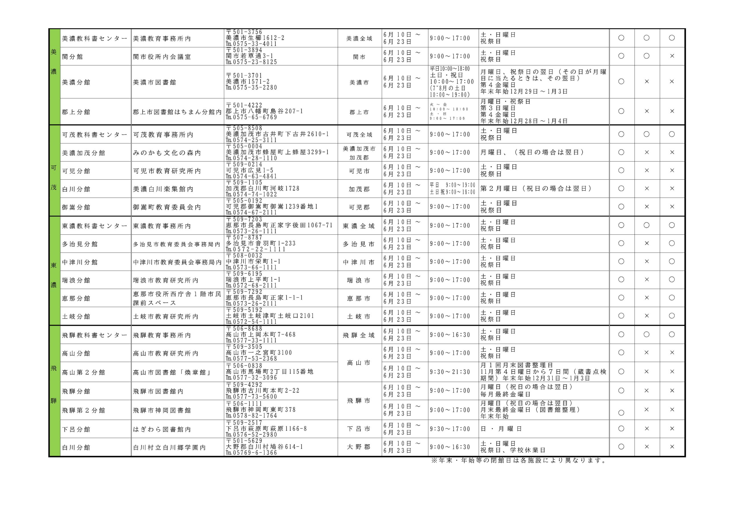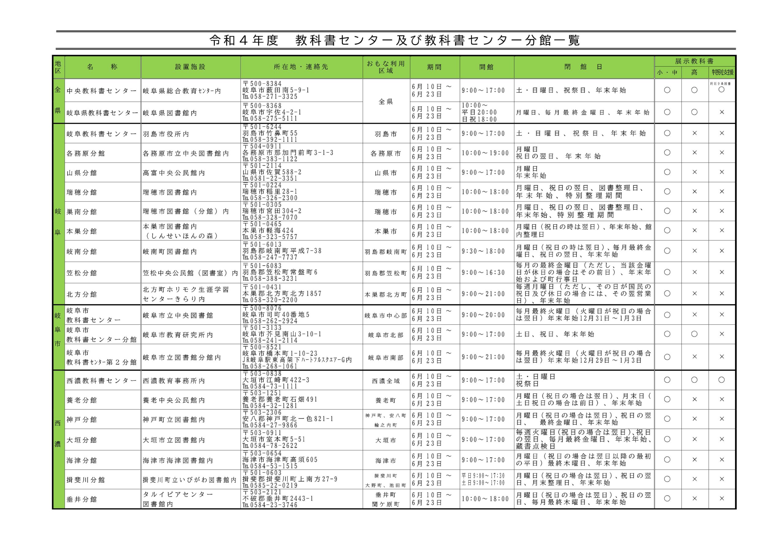 ・教科書展示会場 以下の一覧表のとおり