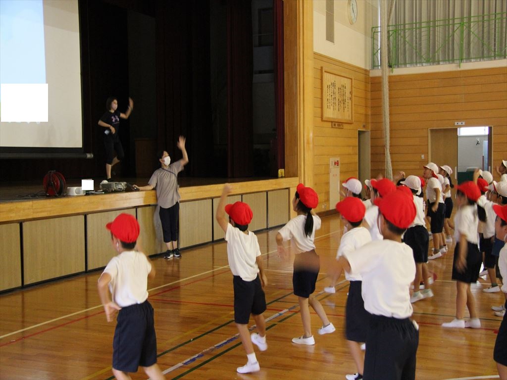 9月11日(月) 3時間目の体育の時間に、1・2年生が合同で運動会のダンスの練習をしました。