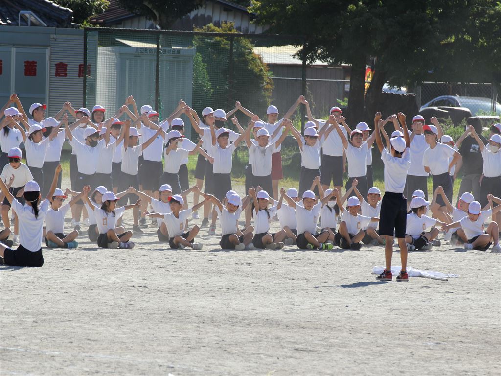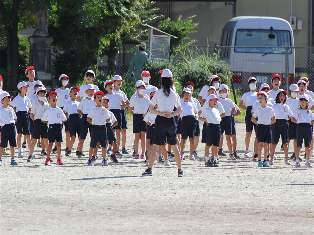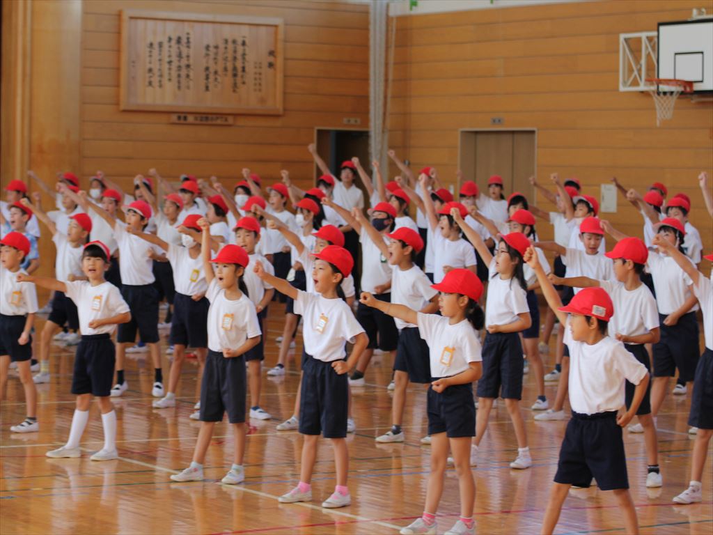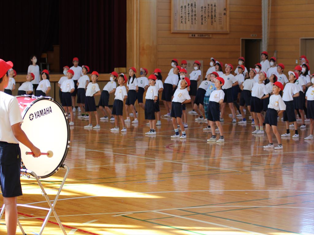 9月29日(金) 朝の活動の時間に、全校応援練習を行いました。運動会を1週間後に控え、初めての赤団・白団に分かれての練習となりました。