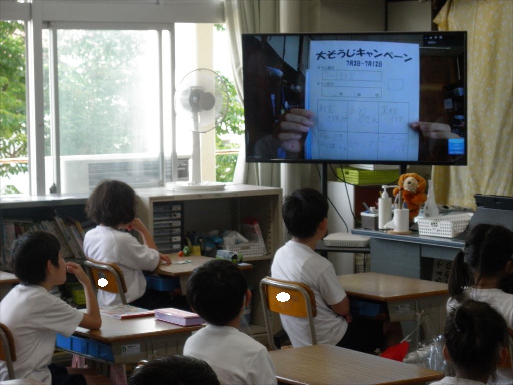 学習面では授業を受ける時の姿勢や鉛筆の持ち方、生活面では掃除への取り組み方、健康安全面では熱中症の予防、3つのことについて話を聞きました。