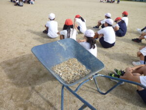 今日の朝活動の時間は、全校児童で運動場の石拾いを行いました。3年生の子が「北小ソーランを踊る5・6年生のために石を拾うぞ~!」と言ってくれた言葉が耳に残りました。運動会の取組である「ぽかぽか言葉・ぽかぽか行動」が、子どもたちに広がっていることを嬉しく思いました。