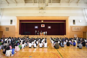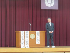 20日(月)に後期始業式を行いました。代表児童は気持ち新たに、授業で頑張ることや時間を守ることについてまわりの友達に呼びかける等、後期に頑張ることや目標などについて、堂々と発表しました。3月末の修了式に向けて頑張っていきます。